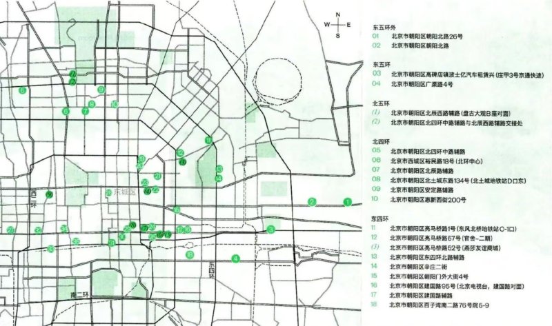 I first became aware of the vents – white tubes topped with green or red domes with holes on the underside that churn out steam in winter – when I stumbled across a zine detailing the mysterious vents titled Beijing Mushroom Field Guide (北京蘑菇寻找指南 Běijīng Mógū Xúnzhǎo Zhǐnán). Inside was a detailed map showing where vents could be found, and even stickers you could doodle on and paste on the objects.