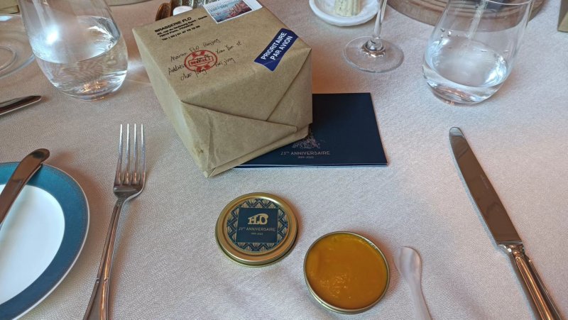 To kick off the trip down memory lane is an amuse bouche that is parcelled up like a delivery from the original FLO restaurant in Paris. The attention to detail here is incredible with the box featuring real vintage French stamps from the '90s. Open up the box to reveal a velvet interior with a custom made tin filled with a delicious Tuna Mousse with avocado, mango and passion fruit which will definitely leave you wanting more!