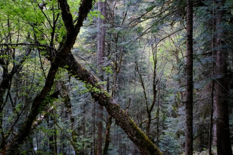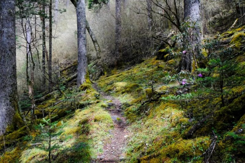 My first hike from the village took me about 12km up to Napo Pasture. The well-signed paths led through a variety of habitats, from temperate mixed forest to upland moors. Crossing the pasture, I was under the gaze of dozens of yaks, whose herders chuckled when the creatures snorted and leapt out of my way. The herders were the only people I met on the trail. I was impressed by their fitness to regularly trek up to the pasture.