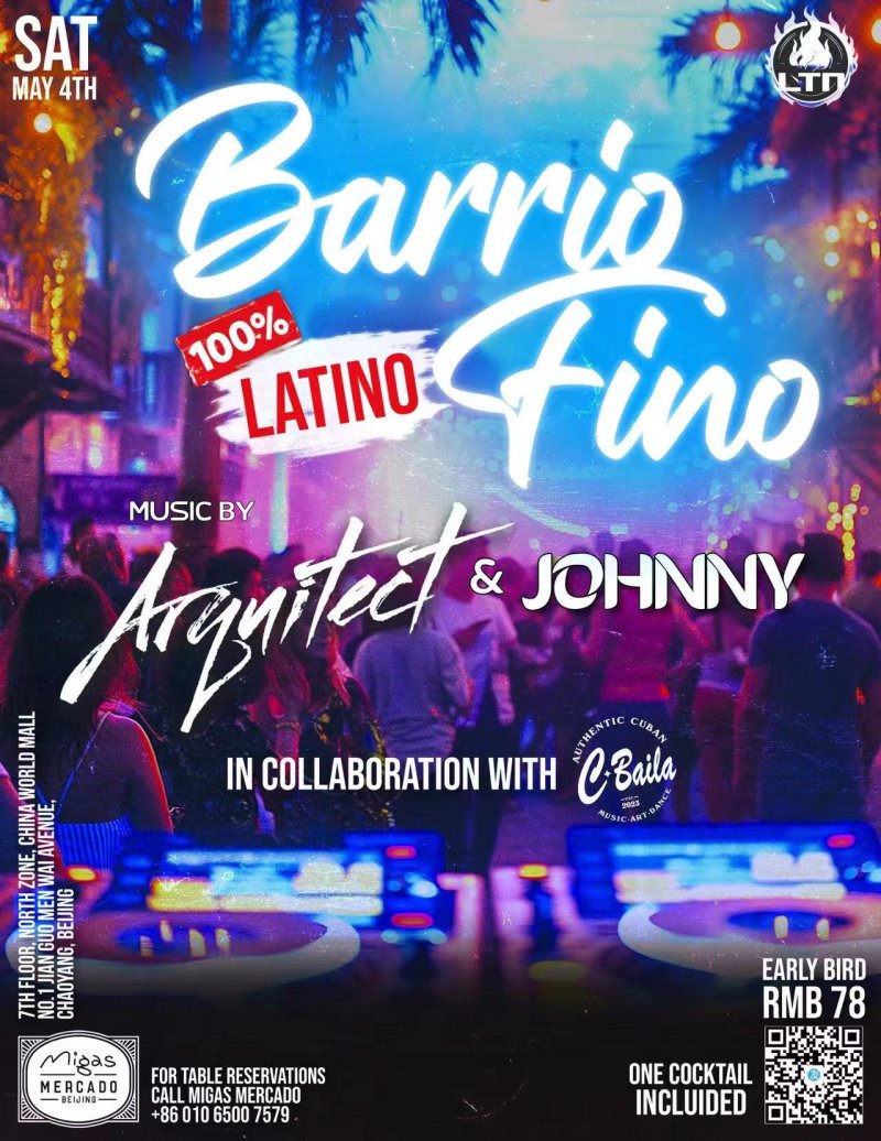 Migas Mercado is teaming up with LTN and C-Baila for a massive party that's not to be missed: Barrio Fino, Vol. 1. Party to the beats of renowned Beijing DJs Arquitect and Johnny with added fun like a limbo challenge PERRO competition, dance animations, a lucky draw, and lots more up on one of the most happening rooftops in Beijing! Every ticket comes with one drink to kick off the night right, so grab yours today!