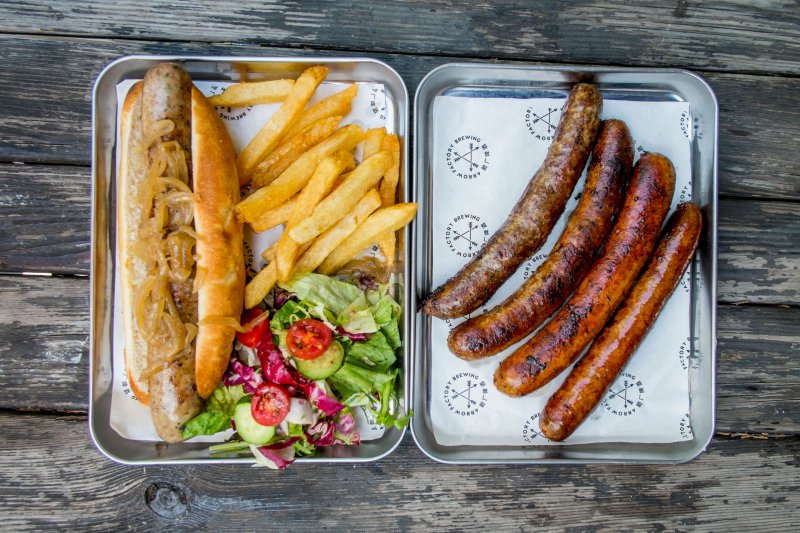 Brewpub Wawabeer is putting a twist on classic flavors with their German-Style Hot Dog, which swaps out the usual hot dog bun for a handmade soda bread bun instead, stuffed inside is a basil-infused German sausage, sauerkraut and secret sauce. Along with their hot dog they’ll have an Apple Wood-Smoked Sausage, a Thuringer sausage infused with applewood smoke and served with a traditional side of sauerkraut.