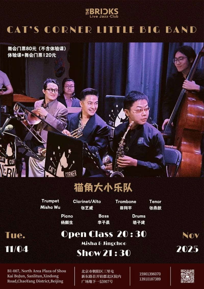 The swing dance class will be taking place at The Bricks from 8.30pm and Cat's Corner Little Big Band will put on a live show from 9.30pm. Tickets for the class and the show are RMB 120, tickets for the show only are RMB 80, you can read more about the event here.