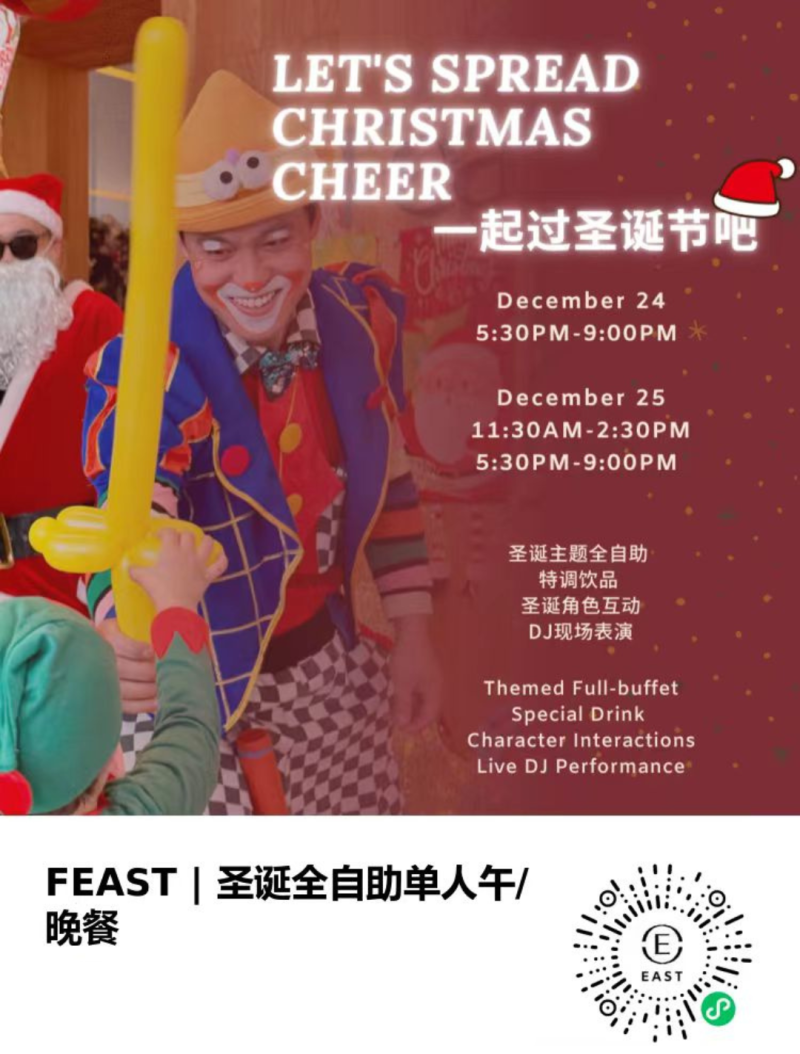 FEAST at the EAST Hotel will be doing a Christmas-themed buffet on Dec 24 and 25. It includes their all-you-can-eat buffet featuring festive dishes, free-flow red and white wine, beer and soft drinks. They'll also have special festive character interactions and a live DJ.