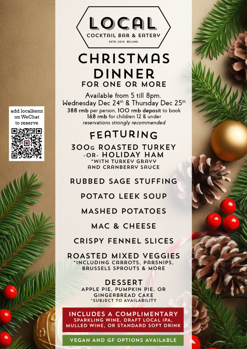 There are numerous Christmas meals happening across Beijing. Let's start things off with two that are happening this coming weekend.