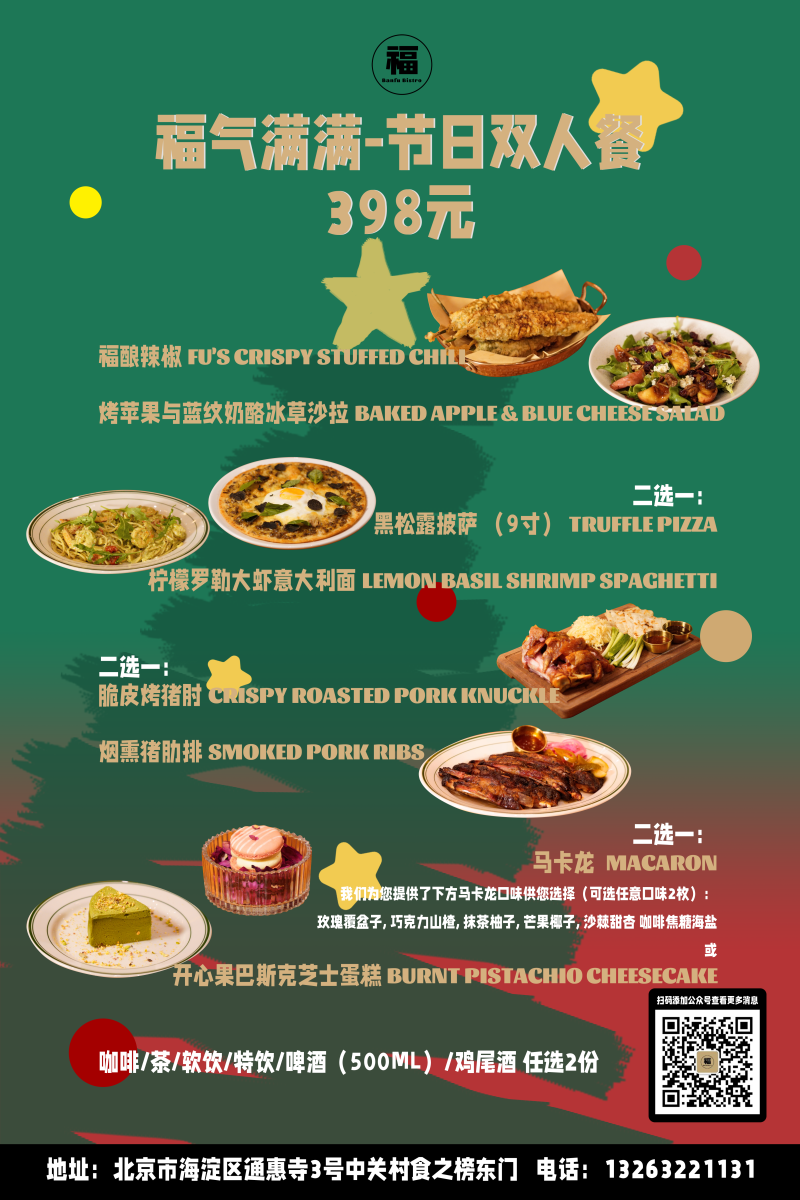 Newly opened Banfu Bistro will be doing a Christmas Set Meal for Two, which includes two starters, your choice of two mains, a dessert and two drinks, including beer, cocktails, coffee and soft drinks. You can see the full details of the Christmas menu above.