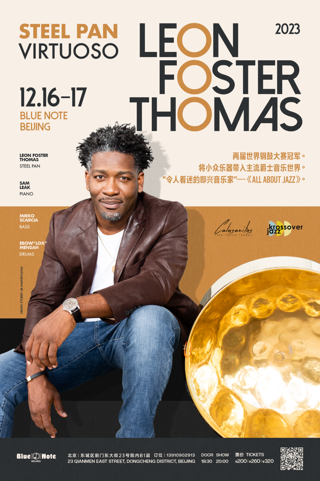 Trinidadian-born Leon Foster Thomas proved that the steel drum can have a place in the jazz world through his music releases and live performances. Winner of the 2002 and 2004 World Steel Drum Competition Solo and Duet Championships, Leon has garnered critical acclaim, with When Steel Talks calling him "an irrefutable master" and Venice Magazine calling him "a musical prodigy with a heart."