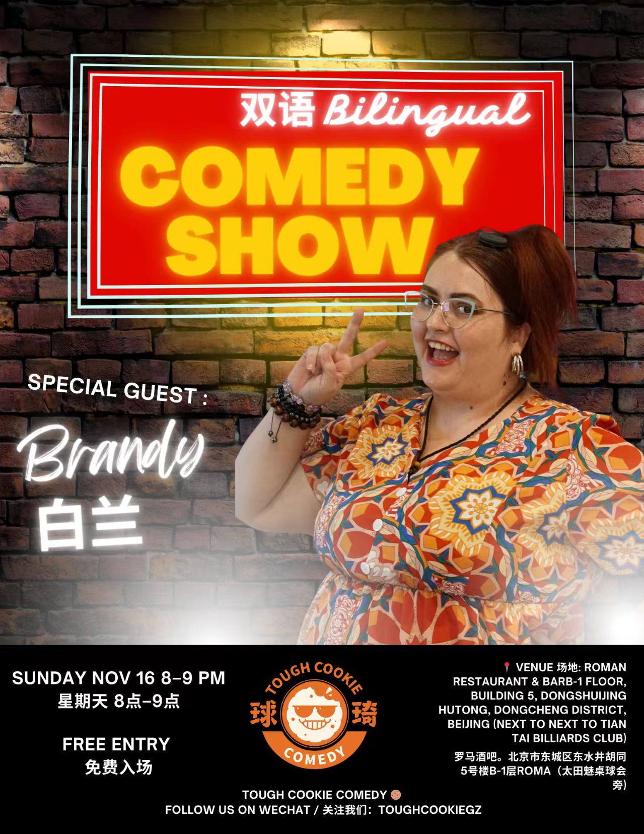 Get ready for a night of laughs with Tough Cookie Comedy! Catch the hilarious Bilingual Comedy Show featuring special guest Brandy (白兰). This free entry event is the perfect way to spend your Sunday night. Head down to ROMAN Restaurant & Bar in Dongcheng District for a dose of international humor and a great party atmosphere. Don't miss this one-hour stand-up showcase!