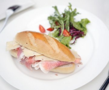 New York deli sandwiches and burgers, steak and pasta, homemade bread and dessert. good atmosphere with blues and jazz background musics.