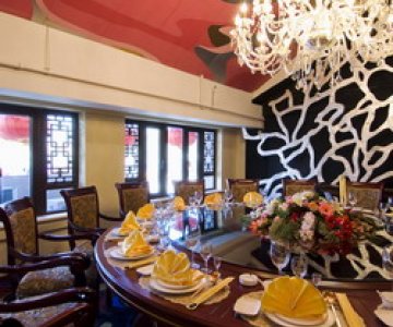 Steps away from the Forbidden City, this posh eatery caters to the varied tastes of tourists and dealmakers with Imperial, Cantonese, Hunanese and foreign dishes prepared by an ex-Diaoyutai State Guesthouse chef. Here, one can dine like a dakuan'r on turtle soup, sea cucumber (RMB 88-188) and venison (RMB 88-188), cross culinary borders like a diplomat with French-style escargots or Korean-style duck head, or feast like a Qing aristocrat on Peking roast duck (RMB 118-158). Spice lovers and price-sensitive diners may prefer the Hunanese offerings like dry-wok donkey (RMB 52), homestyle tofu (RMB 22) and homestyle pork with peppers (RMB 32). The decor is “Mandarin chic” – teak furniture, screens, golden chopstick holders – and, yes, the embroidery and paintings on the walls are for sale.