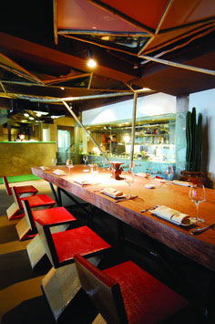 Boasting edgy interior designs and a lakeside view of Houhai, Ken De Rouge mingles food and art in an East-meets-West atmosphere filled with Tang dynasty chairs, rattan-woven fans, exposed brick walls, leather chairs, an open kitchen and three stories. The poetically composed menu emphasizes seafood includes contemporary takes on Chinese ingredients with such dishes as silken tofu mousse toped with crab roe, a dish of crunchy forest mushrooms sautéed in a teriyaki-like sauce and crispy prawns with cumin and chili served atop a mound of dry ice. They also serve Peking duck and offer an extensive list of rice wines, plus a cocktail with a twist: the Mao-gerita (made from Mao Tai). Set menus available.