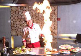 Emphasis on “show” – teppan chefs cook up fresh, thin slices of marbled beef, lobster and abalone in style with diners gathered around the grill. The buffet (lunch RMB 128-230, dinner RMB 158-280) features everything on the menu – including sushi, sashimi, a salad bar and teppanyaki.
