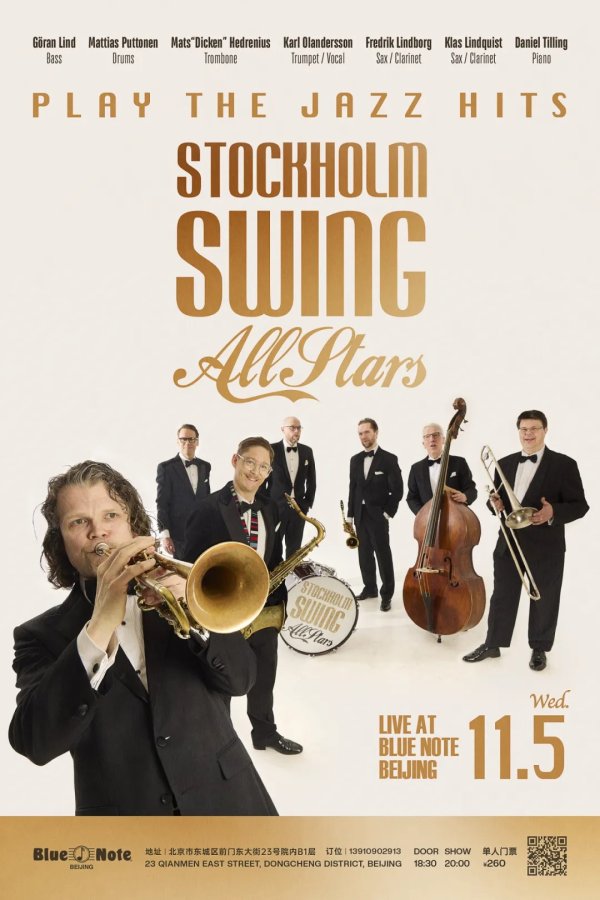 Midweek blues? Not with the Stockholm Swing All Stars live at Blue Note Beijing! This ensemble-featuring six top musicians like Göran Mattsson (Bass), Mattias Puttonen (Drums), and Karl Olandersson (Trumpet/Vocal)-will play all the Jazz Hits. Swing into Wednesday night for a sophisticated evening...