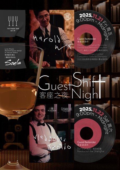 TODAY 09:00 pm - 02:00 amHoliday vibes are taking over The Music Bar at Hyatt Regency Beijing Wangjing! This Friday and Saturday from 9pm till late, we’re turning up the energy with star guest bartenders — Harold Wu, the 2022 Bacardi Legacy Cocktail Competition National Champion, shaking up on Friday. Vladyslav Tronko, Bar...Is it free? It's free