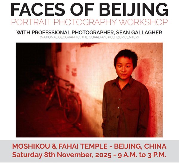 Nov 08 09:00 am - 03:00 pmIn this new photography workshop, you will learn to take portraits like a professional photographer, working on a series of images about the people of Beijing. In this workshop, Sean Gallagher will personally help you and guide you to create your own powerful portraits, drawing upon his...Is it free? Not freePrice: 950