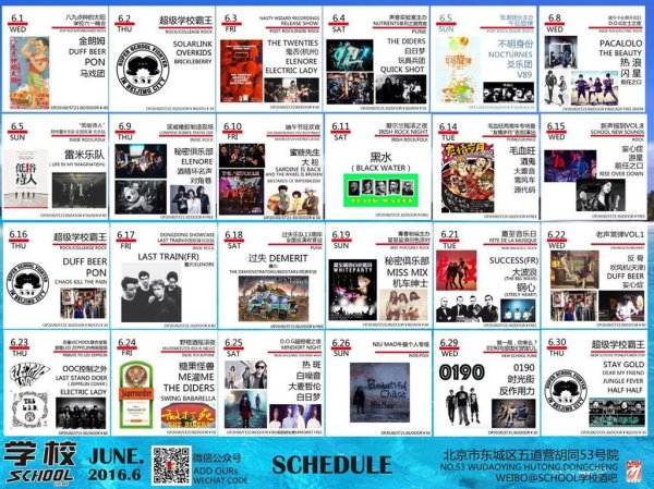 Follow School Bar on WeChat for all the latest show info, last minute updates/secret shows, interviews, and more! WeChat ID: schoollivebar