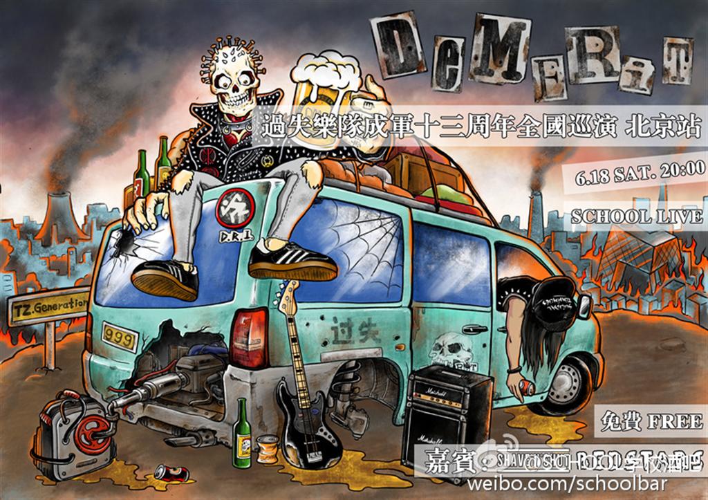 Beijing's per-eminent street-punk band Demerit have had an extremely busy year, and are most certainly not resting on their laurels. The foursome toured Europe for over a month in March/April, and thereafter transitioned right into a tour all across China in cities big and small throughout May and June. Formed in 2003, Demerit have done it all. 13 years later, the band is still going strong, writing new songs, performing as if it's their first show ever, and doing it all with a huge smile on their face. Give Demerit a heroes welcome as their return to Beijing and finish their tour with a show at School!