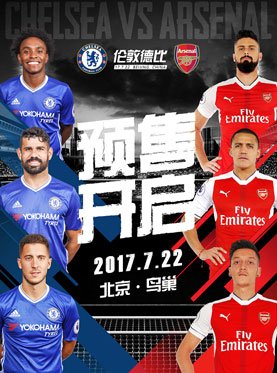 London soccer teams Arsenal Football Club and Chelsea Football Club meet for the first time ever outside of London on July 22 at Beijing's National Stadium (The Bird's Nest) in a pre-season friendly match.