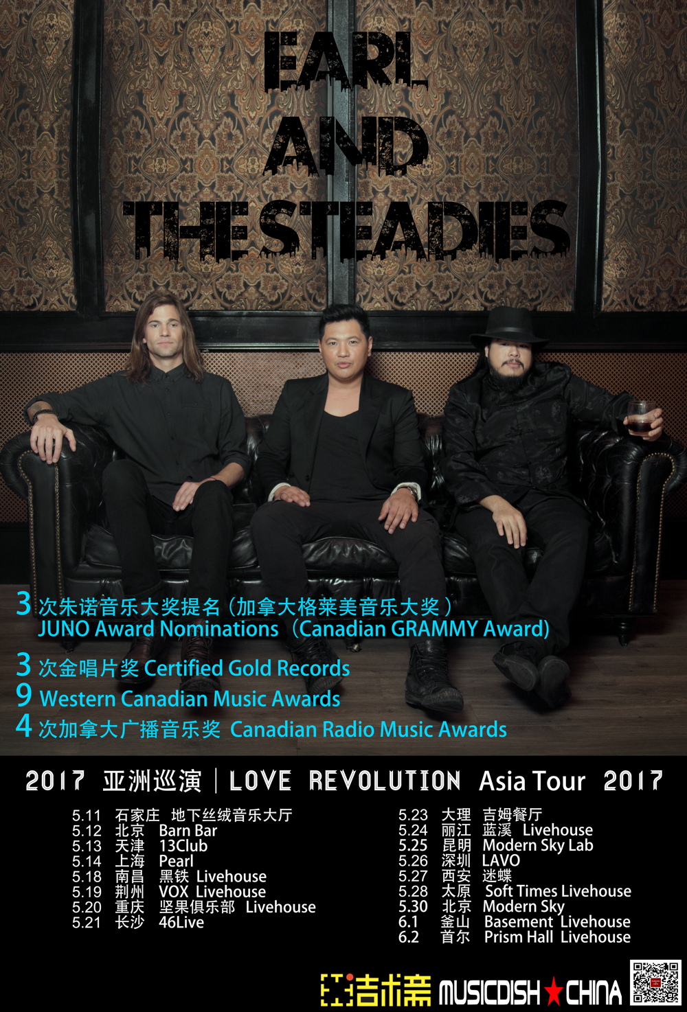 In the early-to-mid 2000’s, Earl made history as he was part of the very first North American band to tour in mainland China, and later paved the way for many artists to do the same. Working with Warner Music China, Earl played in sold-out theaters, on live television shows which aired to millions across the mainland from Beijing to Wuhan, all while winning over fans with his infectious smile and energy. However, his band never made it back when all Pereira wanted to do was become an international success. So in 2010, Earl eventually left his old band to start his own brand new band calling it The Steadies, which showcased his world-class song writing, singing, and producing abilities. The band’s unique island-rock sound mixes pop-rock with funk and reggae, and allows Earl’s contagious personality to always get the audiences smiling, dancing and singing along. After years of building up his new band in Canada, Earl & The Steadies are finally ready to make their mark in China though their exciting high-energy style of rock steady music!