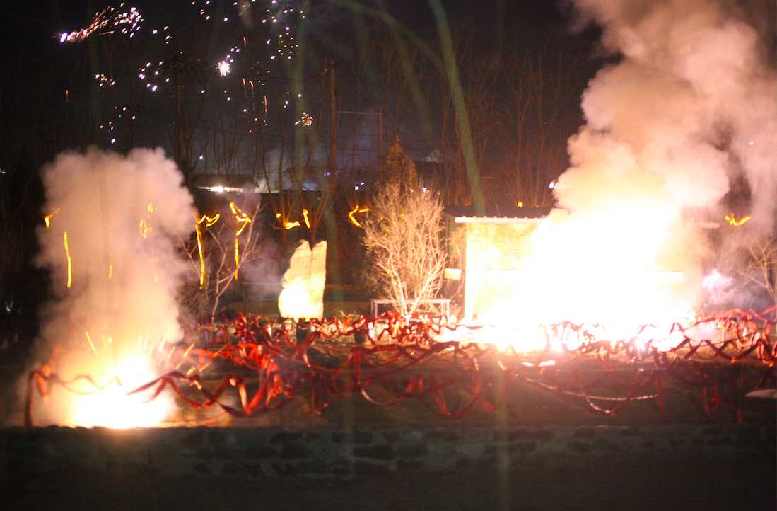 除夕晚宴在瓦厂举办,现场二胡表演,包饺子,以及午夜188,000鞭炮。