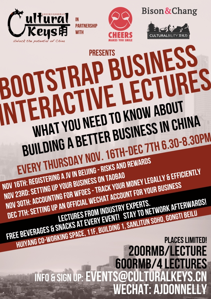 Join Cultural Keys for our second series of lectures that help expats looking to start, run and expand their own businesses in Beijing understand potential issues and solutions to common business questions.