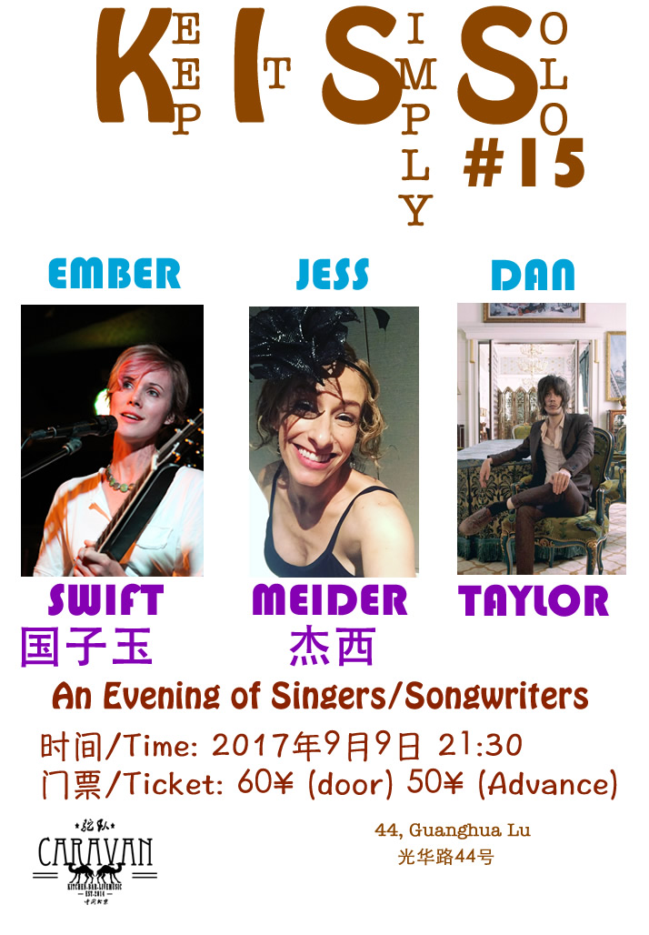 Join us september 9th for 3 of the most amazing Singer Songwriters in Beijing these days: Ember Swift, Jess Meider and Dan Taylor! For one evening, they will sing their original songs, solo and tell you the stories behind them.