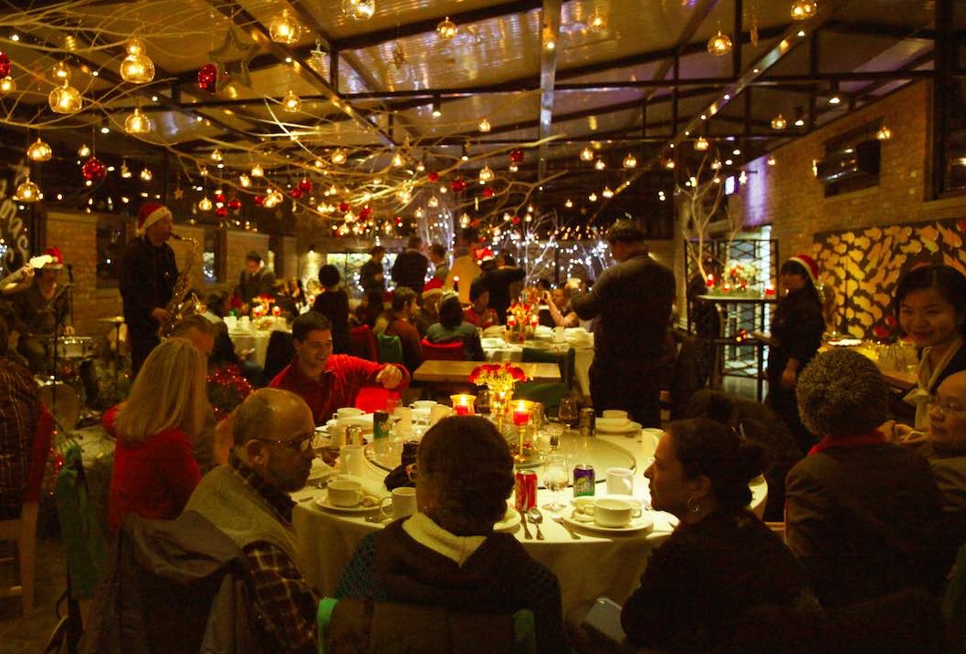 整晚现场爵士乐表演,之后集体唱圣诞颂歌