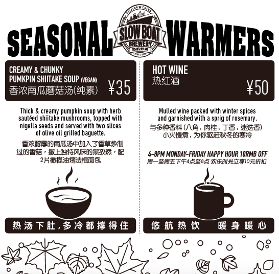 Enjoy both at a happy hour price (10RMB off) 4-8pm Monday to Friday.