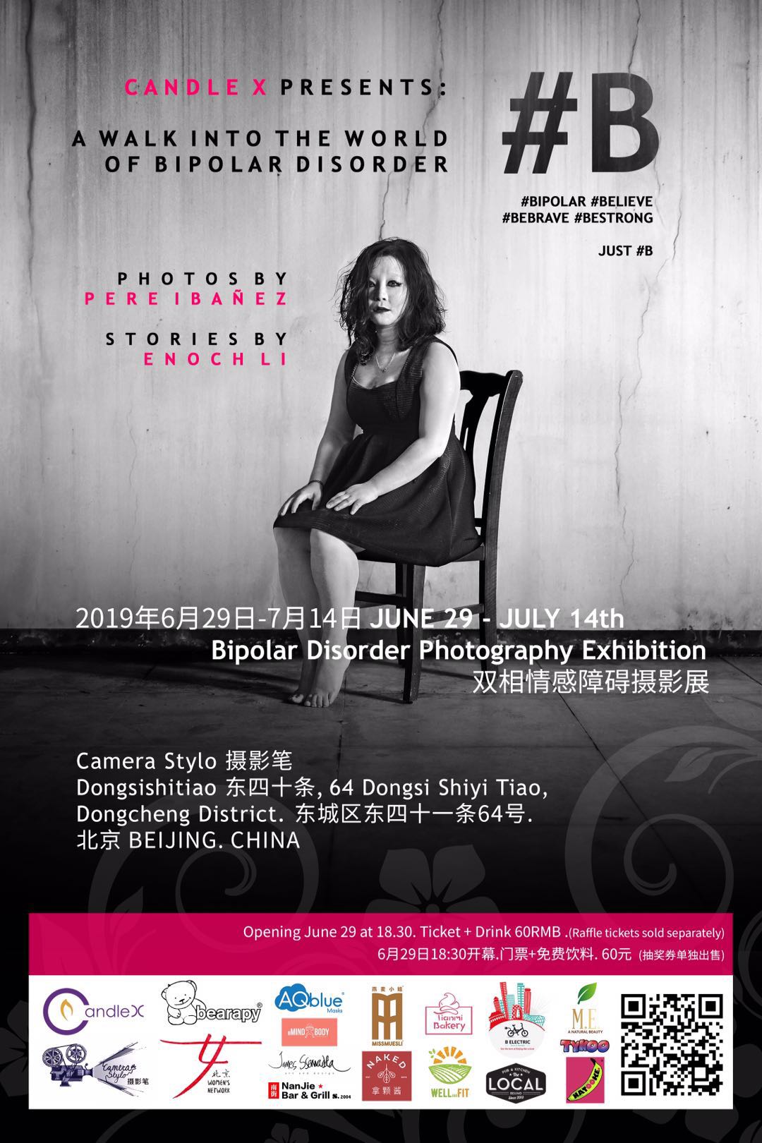 This exhibition will feature Moodlab, an intimate portrait photography series shot by Pere Ibanez profiling Beijing residents that have been diagnosed with bipolar disorder. In addition, the opening event will include a panel discussion, which we hope will be an open and frank conversation on the realities of bipolar disorder. To cap the evening off, we will have a raffle, for which many of our sponsors and partners from the wider Beijing business community have generously donated prizes.