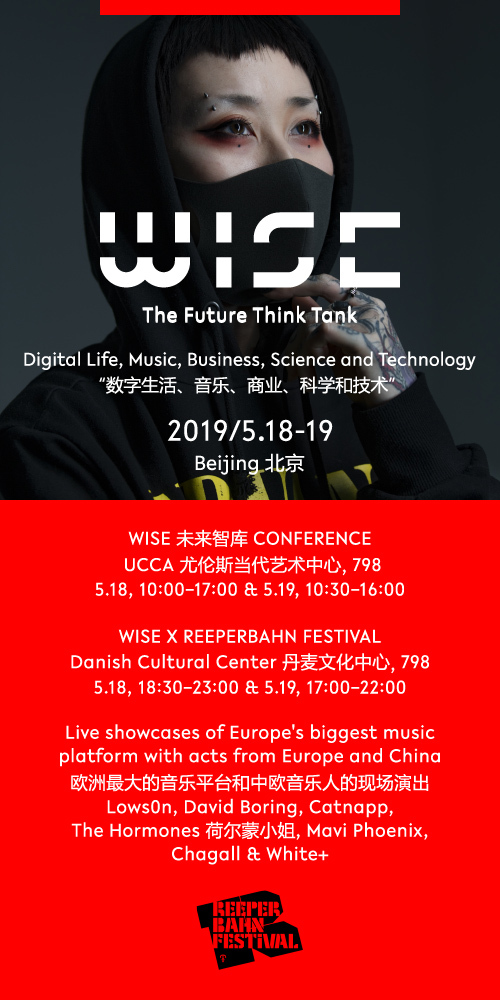 This year's two-day WISE The Future Think Tank event expands from its humble beginnings last year to not only include 16 panel talks featuring a huge array of industry experts which will span trends in AI, music business and performance, the art market, Chinese culture, fashion gamification, and beyond, but also two full evenings of music. For such, they've called upon the help of Hamburg's Reeperbahn Festival ("Germany's answer to SXSW") at the Danish Cultural Center, organizing two free music showcases loaded with eclectic and individually strong Chinese and European acts.