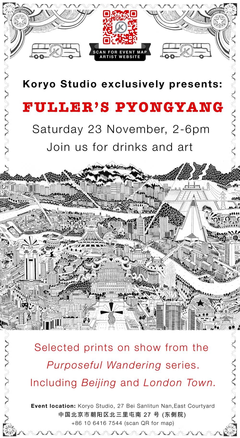 This November sees the launch of Tourist Map Of Pyongyang (2019) — an intricately detailed hand-drawn panorama inspired by FULLER’s experience as an artist visiting North Korea’s capital. Based on two weeks spent walking through as much of Pyongyang as is possible for a tourist — accompanied by North Korean guides at all times; as per this one-party state’s strict rules for foreigners — FULLER’s Pyongyang pulls back the curtain on a city so routinely shrouded in mystery. His work is illustrative and graphical, the black ink creating a kaleidoscope of pictographs, architecture, patterns and cultural curiosities, all combining to create both literal and hidden narratives.
