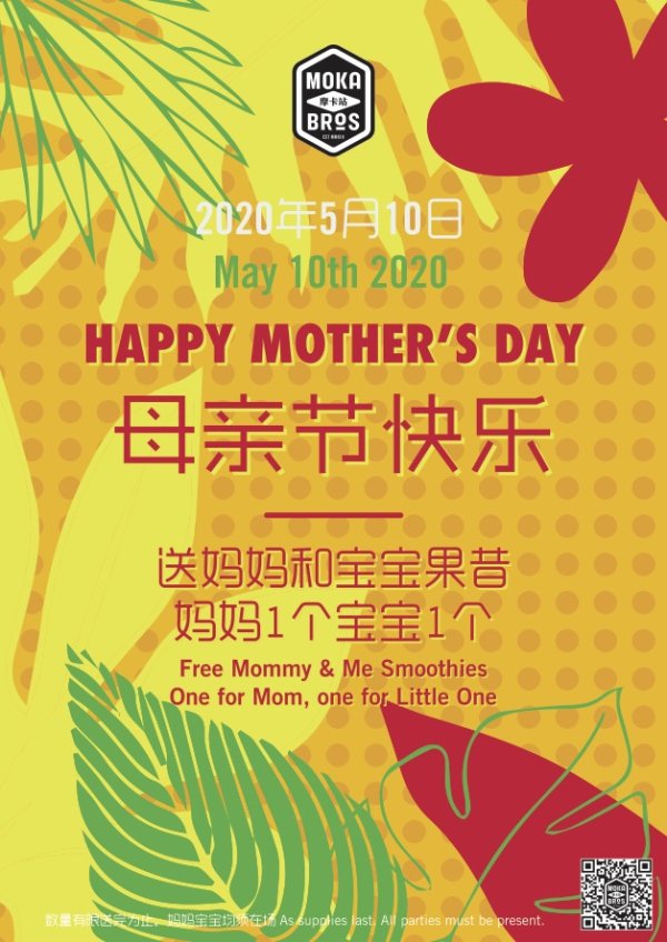 Moka Bros is celebrating all the super moms out there this Mother’s Day! Come into any location with your little one to color in a Moka Mother’s Day card and enjoy free Mommy & Me smoothies on the house all day on Sunday, May 10.