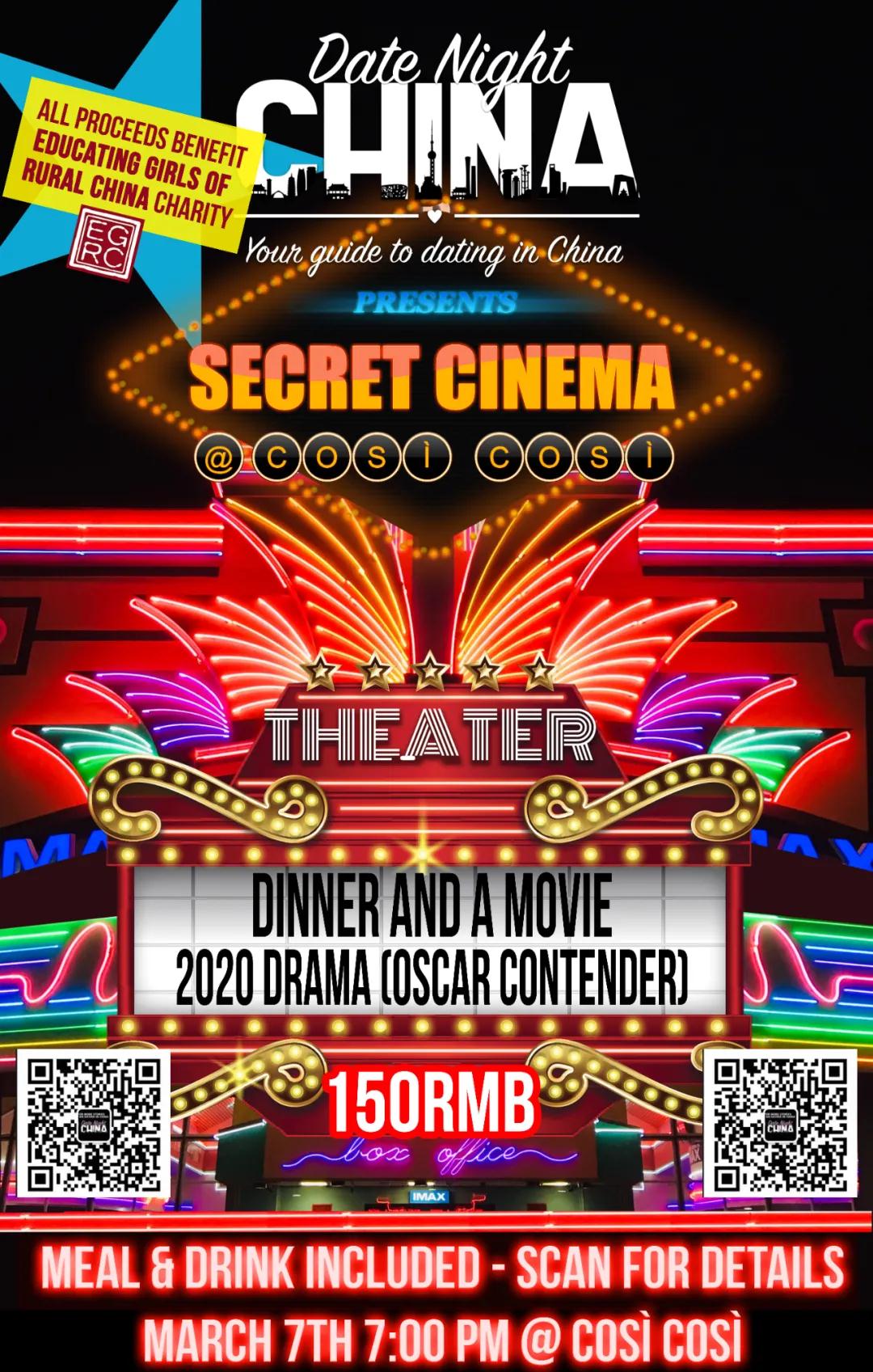 Ticket Cost: 150 RMB (includes one dinner entree and one drink, options listed below). The movie will be in English with Chinese and English subtitles.