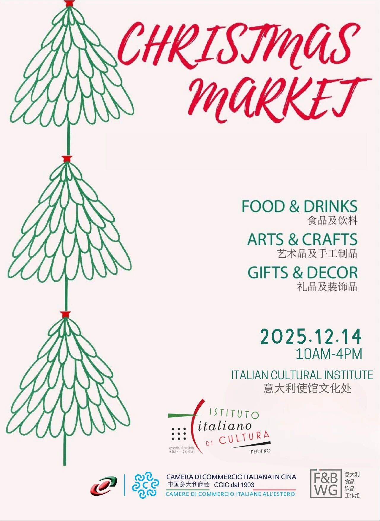 Get festive at the Christmas Market hosted by the Italian Cultural Institute! Browse for gifts, decor, and unique arts & crafts, all while enjoying delicious food and drinks. The event is supported by the Italian Chamber of Commerce in China and is a perfect community event to get into the holiday spirit. (意大利使馆文化处 意大利和中国意大利商会 CCIC)