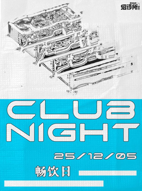 Head out for a high-energy 'Club Night' party on Friday, December 5th! The monochromatic, industrial-style poster suggests a night of hard electronic music and intense partying. The event title includes '畅饮日' (Chang Yin Ri), which translates to 'All-you-can-drink Day' or 'Drinking Spree Day,' indicating a major party night for a young audience.