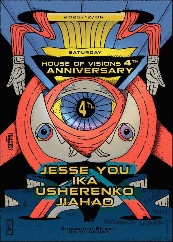 Celebrate the 4th anniversary of House of Visions with Jesse You, Ika, Usherenko, and Jiahao. Bold, surreal visuals and a vibrant lineup make this a must-attend nightlife event in Beijing.