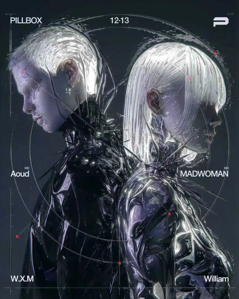 Dive into the dark, sleek world of PILLBOX, a futuristic club night featuring a line-up of cutting-edge DJs. With a highly stylized cyberpunk poster aesthetic, this event promises a heavy dose of industrial sounds and deep bass. Catch sets from Aoud, MADWOMAN, W.X.M, and William on the 13th.