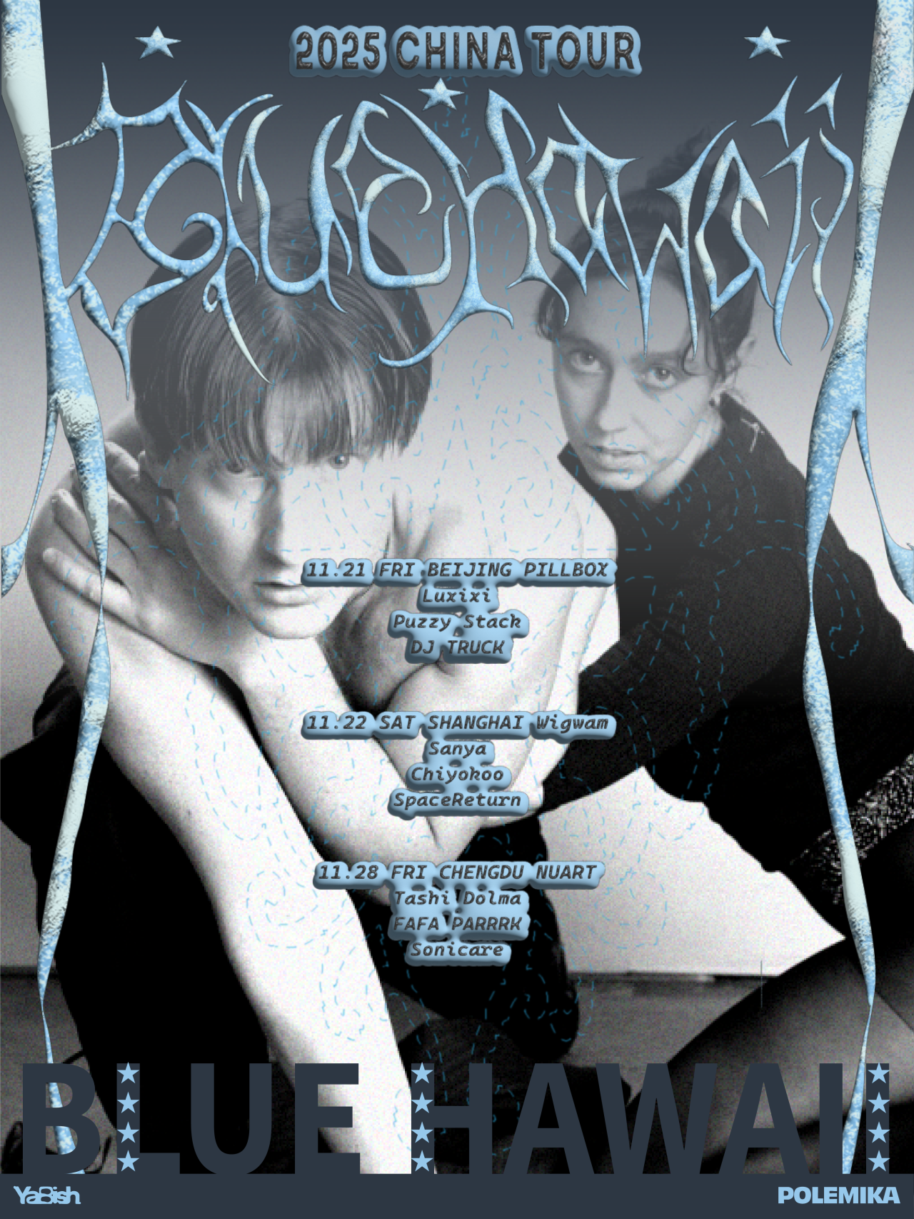 Canadian electronic duo Blue Hawaii hits Beijing's Pillbox for their 2025 China Tour! Known for their dreamy, melancholic synth-pop, Raphaelle Standell-Preston and Alex Kerby bring their signature sound to the capital. Supported by Luxix, Puzzy Stack, and DJ Truck. Don't miss this Friday night set!