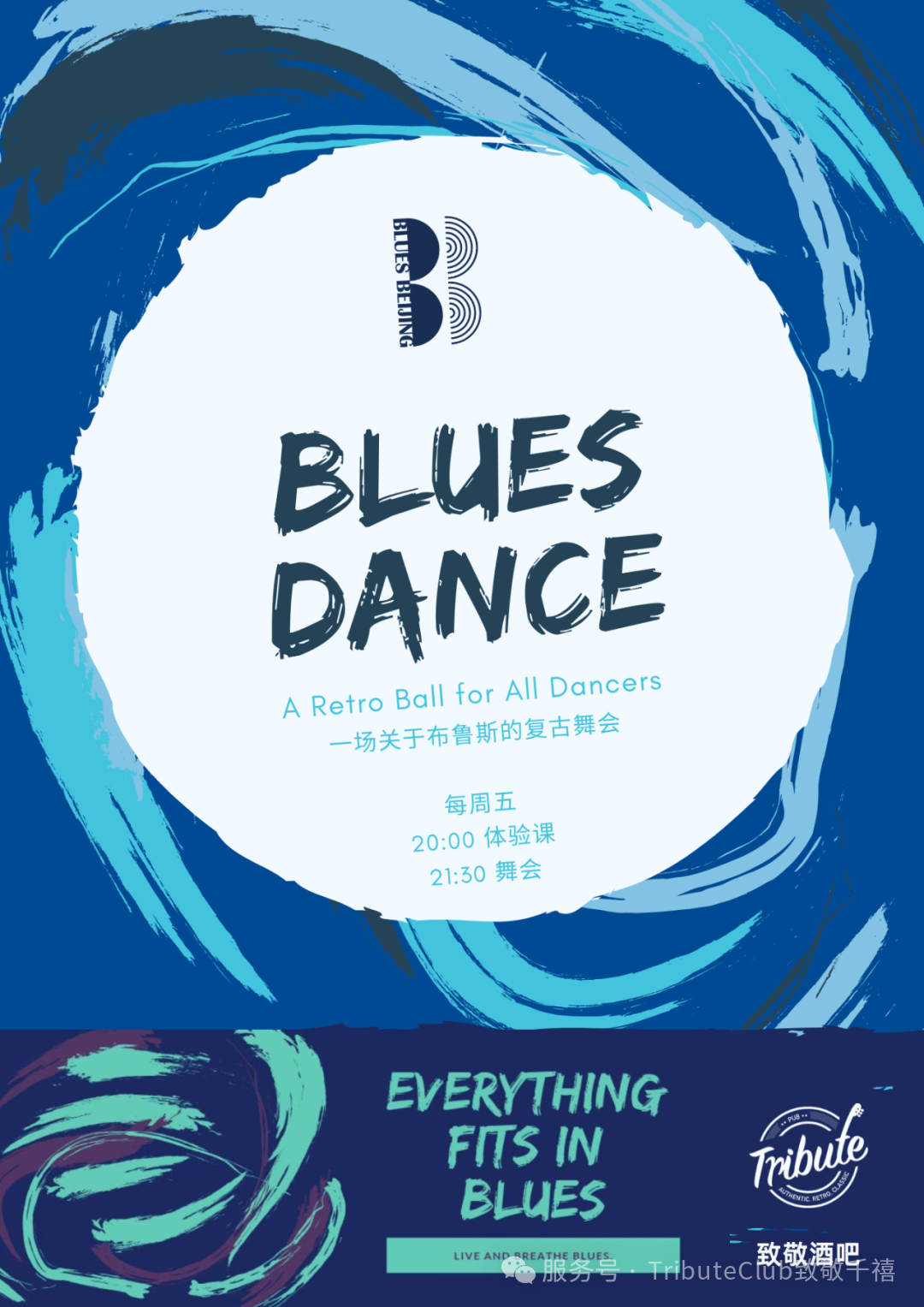 Put on your dancing shoes for a weekly Blues Dance Retro Ball (一场关于布鲁斯的复古舞会), held every Friday. Starting with an 8:00 PM experience class (体验课), the main dance party kicks off at 9:30 PM. Join the Tribute Club community for a night of vintage blues vibes.