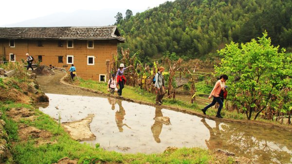 Drive to Yongding County and tulou area, check in at tulou guesthouse in small village, explore nearby tulou buildings; overnight in tulou guesthouse.