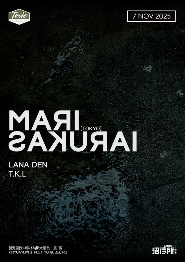Tokyo-based DJ and producer Mari Sakurai brings her signature sound to Beijing's ZHAO. Get ready for a night of cutting-edge music with support from Lana Den and T.K.L. presented by Toxic. This is your chance to catch one of Japan's most exciting electronic artists.