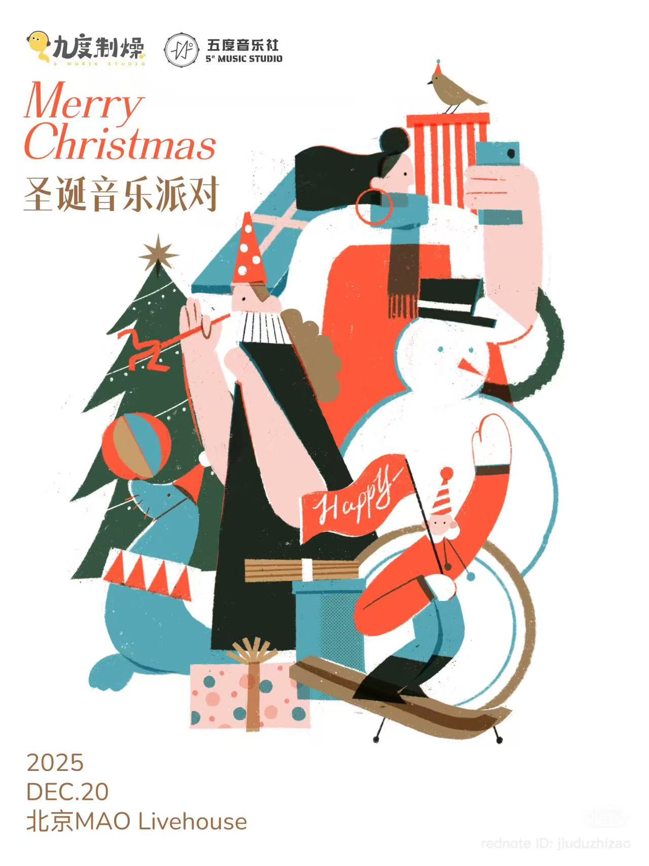 Get ready for a festive night of holiday tunes at the Merry Christmas Music Party, hosted by 5° Music Studio and Jiudu Roasted (九度制燥), held at the famous MAO Livehouse. Join the party crowd for a celebratory evening to kick off the Christmas week with good vibes and great music. Check the RedNote ID for more details: jiuduzhizao.