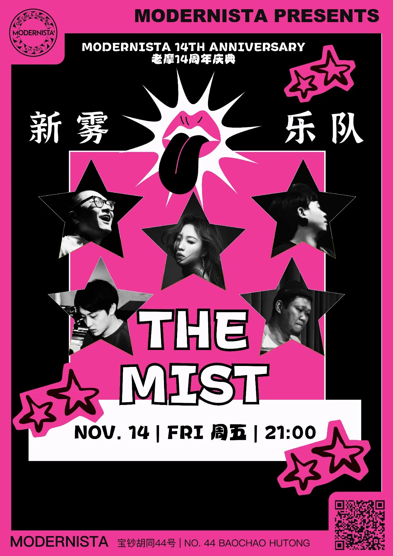 Don't miss The Mist (新雾乐队) live as Modernista continues its 14th Anniversary celebrations (老摩14周年店庆)! This Friday night features a powerful rock performance from the band, presented with an edgy, vibrant, and fun aesthetic. Head down to No. 44 Baochao Hutong for a high-energy night out for Beijing's live music fans. Check the QR code for more details.