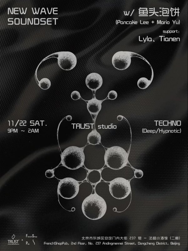 Dive into the deep end of hypnotic techno and New Wave with Pancake Lee (鱼头泡饼) and Mario Yu at TRUST studio! Supported by Lyla and Tianen, this late-night soundset is a must for serious electronic music fans. Find the groove on the 2nd floor of FrenchShopPub.
