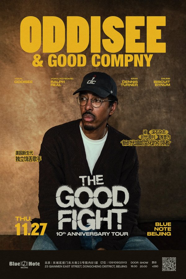 Don't miss the 10th Anniversary Tour of ODDISEE & Good Compny, Live at Blue Note Beijing. Praised by 'Rolling Stone Magazine' and 'Time Magazine' as a 'leader of the new generation of Hip-Hop culture', the independent US singer will perform on Thursday, November 27. Doors open at 18:30, show starts at 20:00. Price is ¥280.