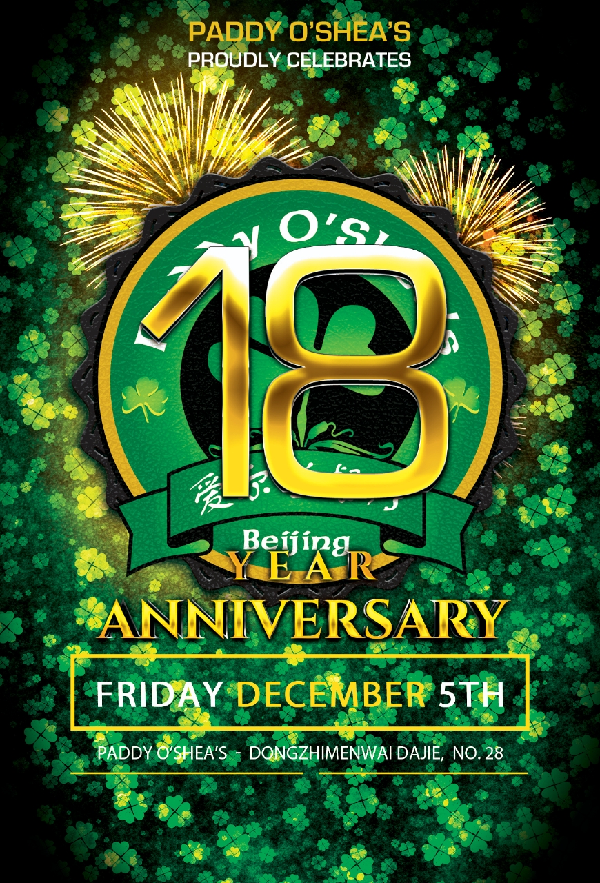 Raise a glass to one of Beijing’s most beloved cultural anchors – Paddy O’Shea’s Irish Pub! On Friday, December 5th, Paddy O’Shea’s celebrates its remarkable 18th anniversary, making it one of the city’s longest-lasting and most iconic pubs.