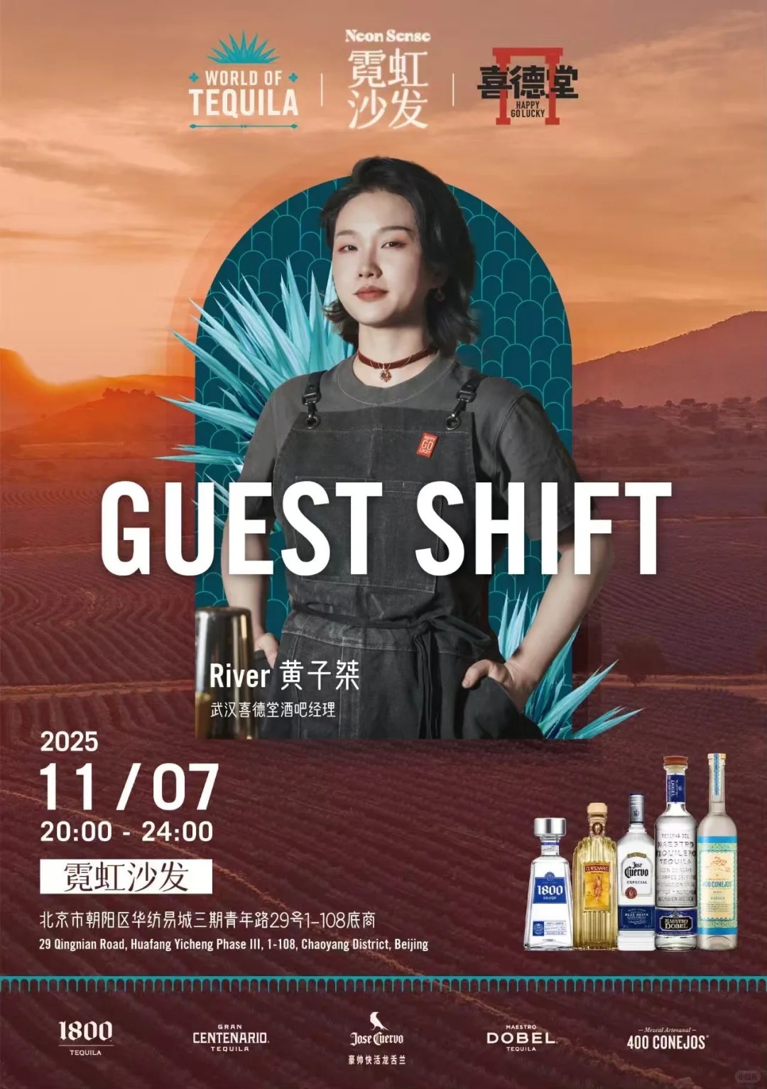 Don't miss a special Guest Shift with bartender River (黄子桀) from Happy Lucky (喜德堂) in Wuhan! River, who is the bar manager at Happy Lucky, will be mixing up drinks as part of the World of Tequila event series. Head over to Neon Sense in Chaoyang to experience top-tier tequila cocktails and a great night out with fellow party-goers.