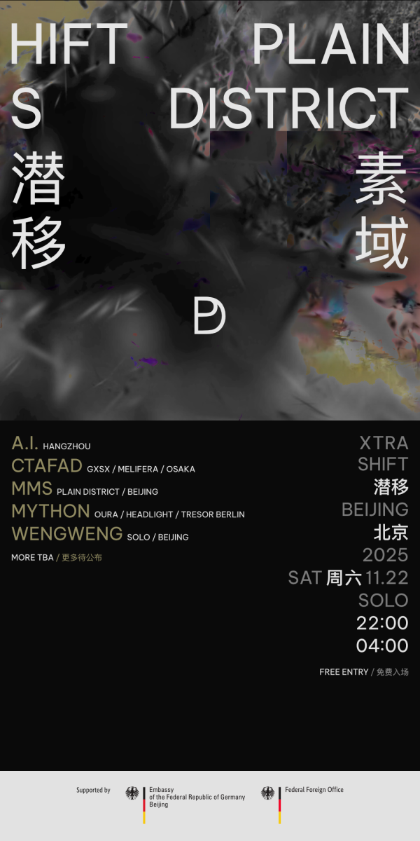 Experience an intense night of underground music at SOLO with this major collaboration between XTRA SHIFT and PLAIN DISTRICT, featuring international artists like CTAFAD (OSAKA) and MYTHON (TRESOR BERLIN), alongside local heavy hitters MMS and WENGWENG. Supported by the Embassy of Germany, this event runs late and offers free entry for all partygoers. More acts TBA.