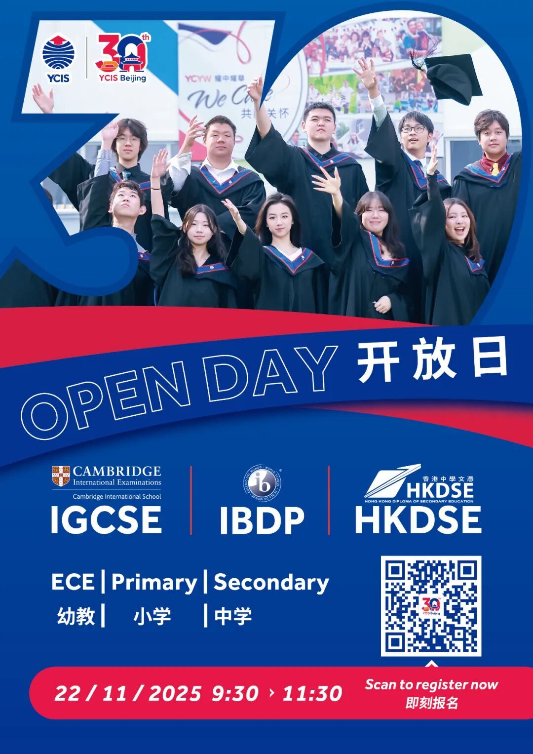 Unlock the future of education! YCIS Beijing's Open Day (开放日) is your chance to explore their ECE (幼教), Primary (小学), and Secondary (中学) programs, including IGCSE, IBDP, and HKDSE curricula. Meet the educators and see how YCIS fosters global citizens. Scan the QR code to register now (即刻报名)!