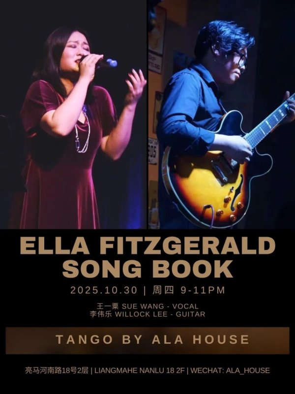Spend your Thursday evening immersed in classic jazz with the Ella Fitzgerald Song Book performance at TANGO by ALA HOUSE. Featuring Sue Wang on vocals and Willock Lee on guitar, this live set promises a sophisticated and intimate musical experience. Join the party crowd for late-night entertainment in Chaoyang starting at 9 PM.