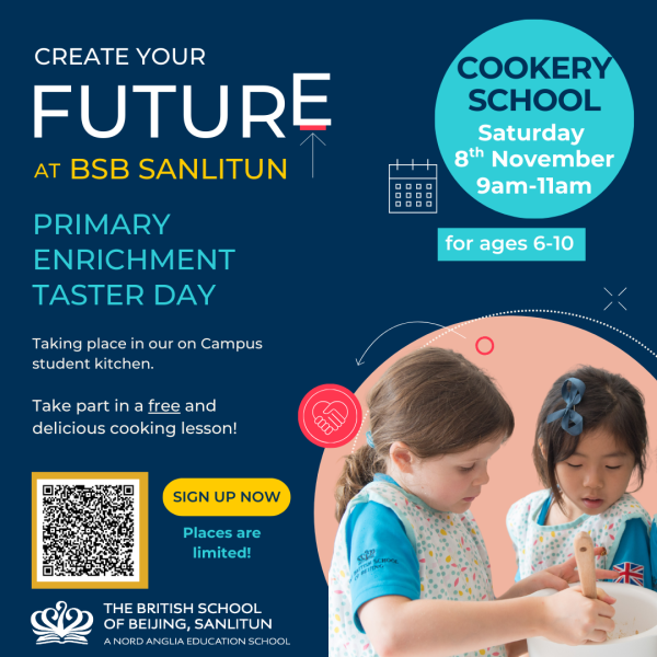Got a little chef at home? On Saturday, November 8th, kids aged 6-10 can master culinary skills at the BSB Sanlitun Primary Enrichment event! It's a fun, tasty, and best of all, free morning in the student kitchen. Treat the family to a morning of hands-on fun and delicious creations—perfect for giving Beijing parents a chill weekend activity.